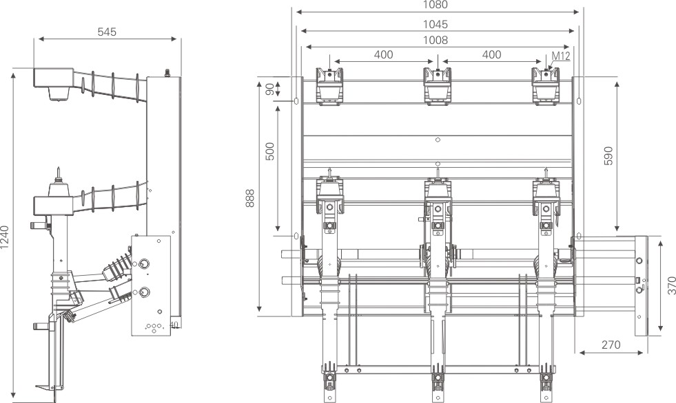 FN12系列高壓負荷開關廣泛應用于高壓輸配電設備,鑒于其擁有良好的分斷性能和可靠的短路電流耐受能力,使其能夠勝任任何電網的要求。當開關與 限流熔斷器組合使用時,可以有效保護1250kVA以內的配電變壓器。 將FN12系列開關安裝在開關柜等設備后,具有以下優點: -開關可通過分合閘完全分隔母排隔間和電纜隔間 -由于動觸頭是垂直運動,可以很直觀的看到負荷開關和接地分合閘狀態。 -由于熔斷器座,接地開關都是一體化安裝在開關上,在將負荷開關安裝在設備上后,無需對熔斷器和接地開關另行調試。